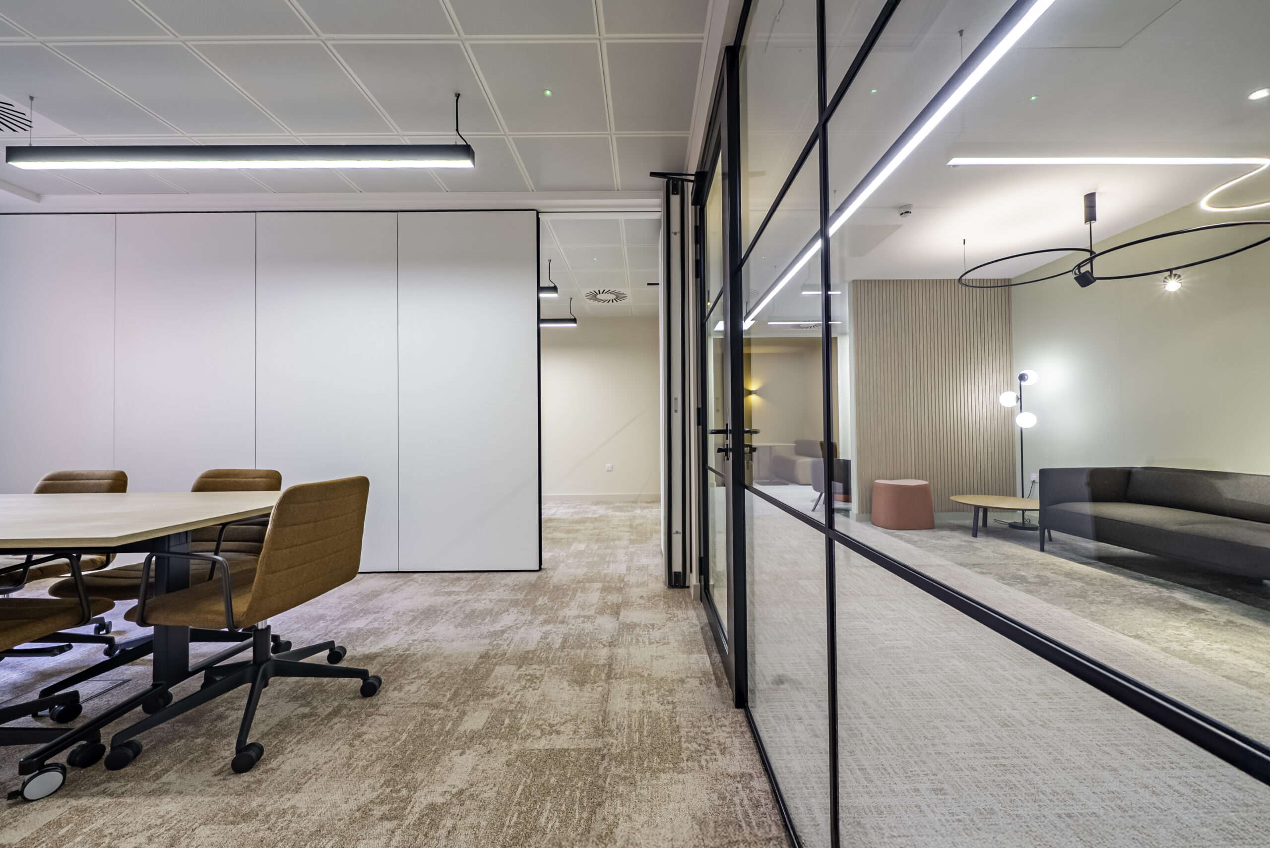 - Two 6-person meeting rooms that can be combined via a concertina wall